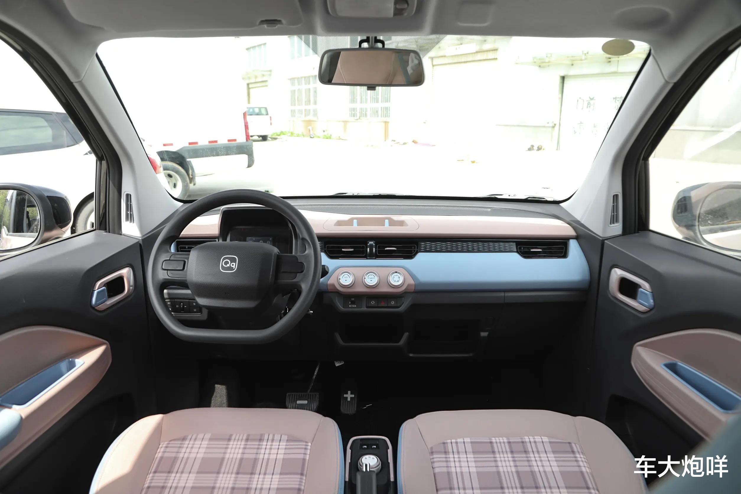 车内部分,奇瑞QQ冰淇淋新圣代搭载多功能方向盘和彩色液晶组合仪表,换挡机构采用旋钮式设计,但并未设置9英寸悬浮式中控屏。此外根据官方公布信息显示,该车还标配前排座椅4向手动调节、电动冷暖空调、后倒车雷达、2扬声器音响等功能配置。