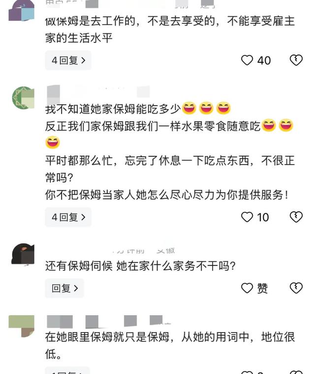 保姆是否应该食用雇主家的食物,特别是一些昂贵的进口水果和零食,成为了一个值得讨论的话题。