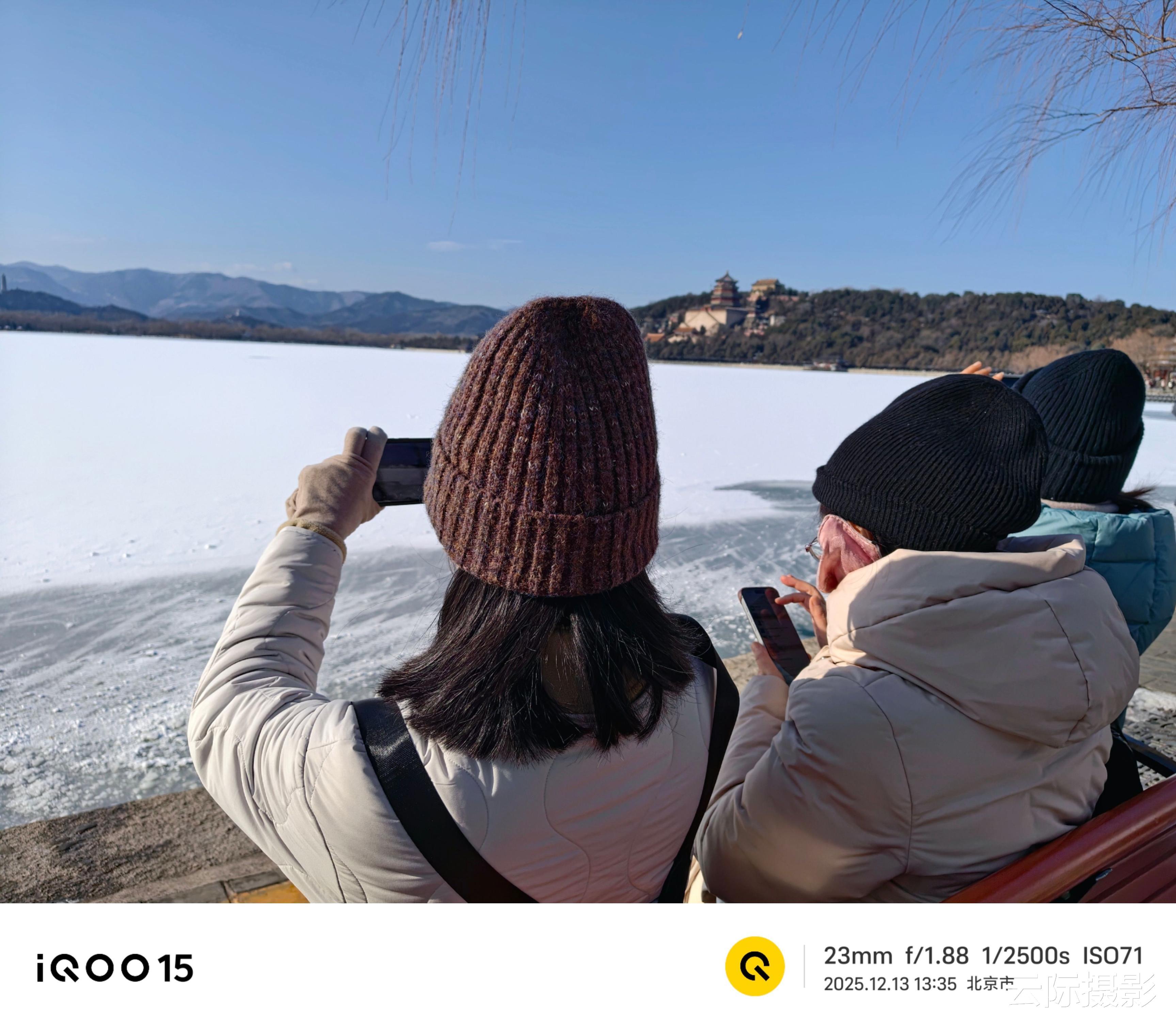 因为北京冬季初雪的缘故,所以连续两天都去了颐和园,让我对iQOO15手机在旅拍上的出片效率更惊讶。第二天主要拍人像,跟着一帮朋友去拍,不仅在选景和布光上都有新的收获,以下为记录随手出大片的照片效果。
