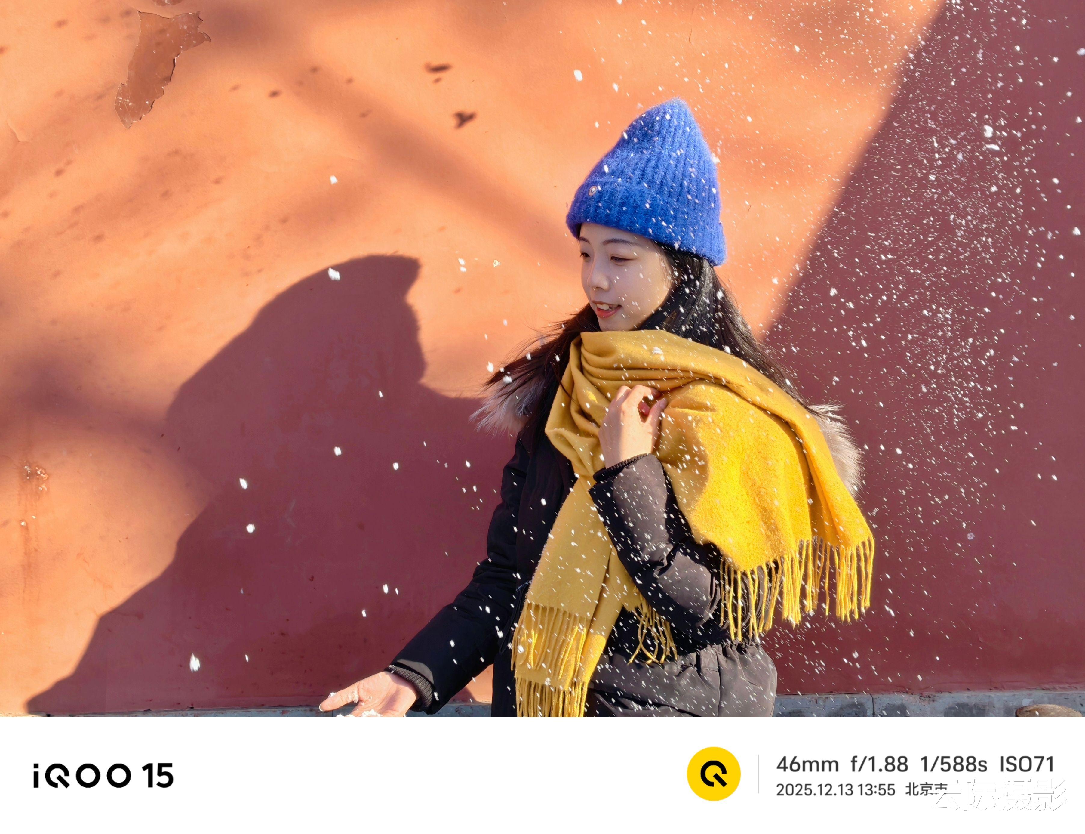 红墙下的人与雪更日子,iQOO15瞬间的抓拍效果很让人喜欢,也更自然的记录出游人的此刻心情。