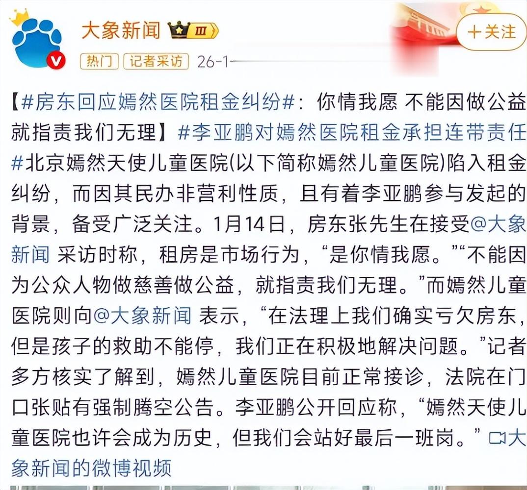 这段视频里,50多岁的李亚鹏站在嫣然天使儿童医院门口,双眼泛红,声音哽咽。