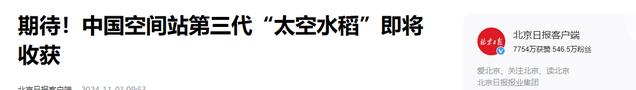 来源:北京日报客户端2024-11-03——《期待!中国空间站第三代“太空水稻”即将收获》的报道