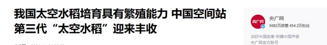 来源:央广网2024-11-04——《我国太空水稻培育具有繁殖能力 中国空间站第三代“太空水稻”迎来丰收》的报道