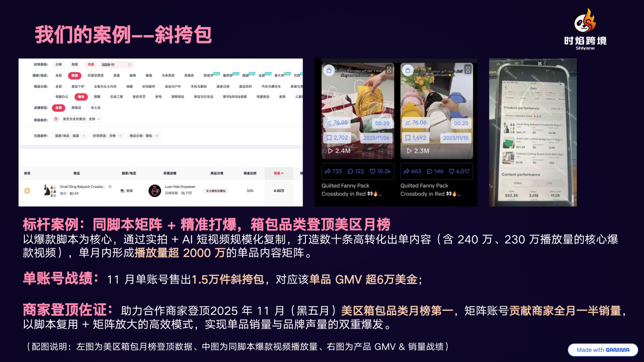她带领团队打造的多个美区爆款视频,单条带货GMV超过20万美金,真实跑通了内容与变现的闭环。