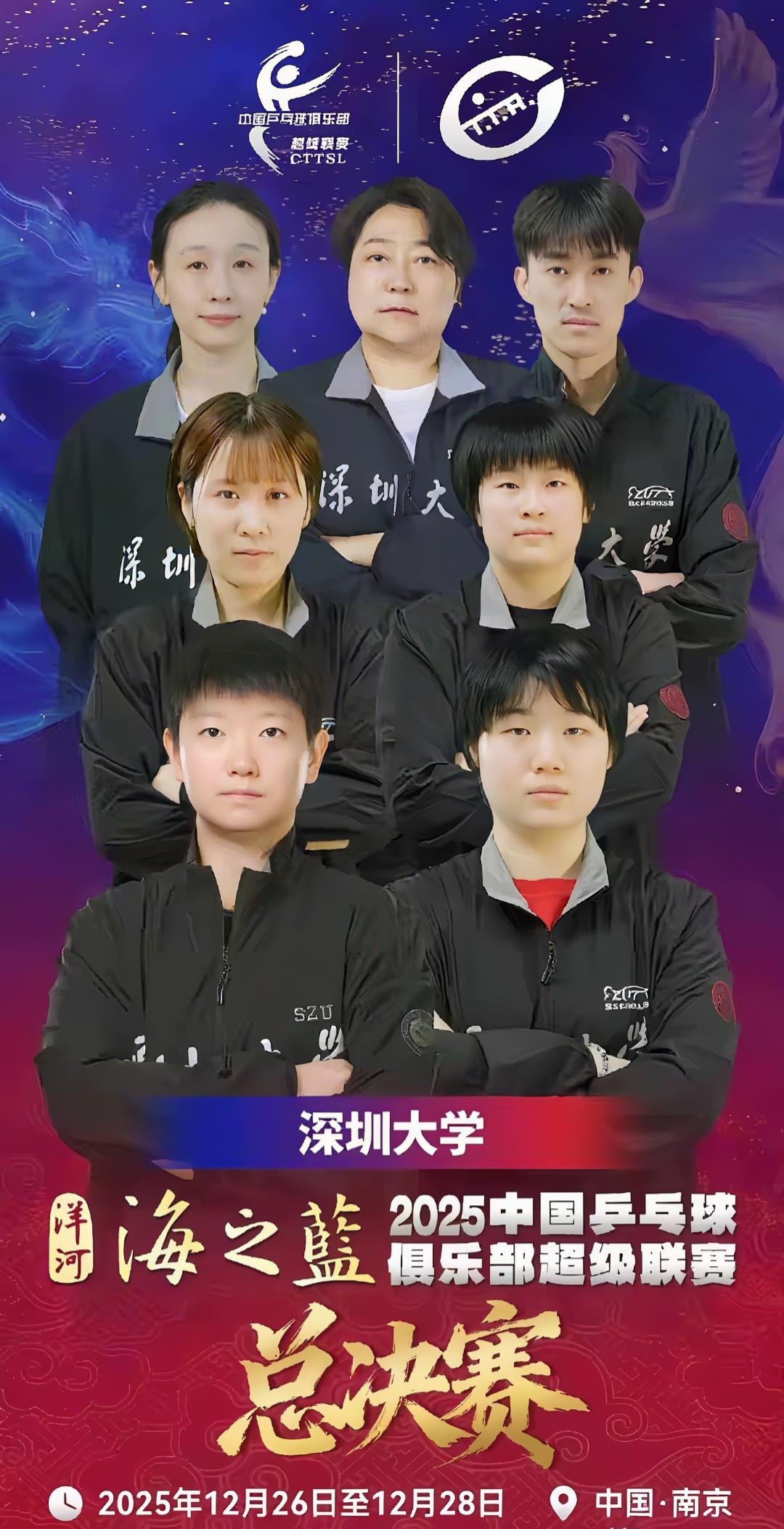 乒超总决赛发布参赛海报,樊振东、王楚钦、孙颖莎全部在列2025赛季乒超联赛总决赛即将于12月26日在南京打响,男女各4支最球球会,将向年度总冠军发起最后的冲锋。