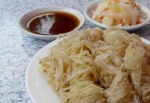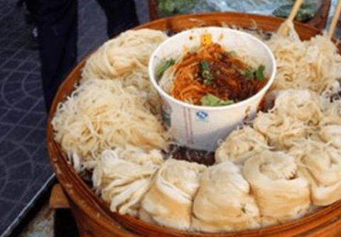 终于我也能买到了一份,吃的时候我才感受到,这花卷馍果然与众不同,看起来层次非常丰富,光是看着就让人特别有食欲,用筷子夹起一个之后,只要轻轻一抖,花卷馍立刻便散了,变成了一团细细的面带!看起来有千丝万缕!蘸着酱吃,一定特别美味吧。