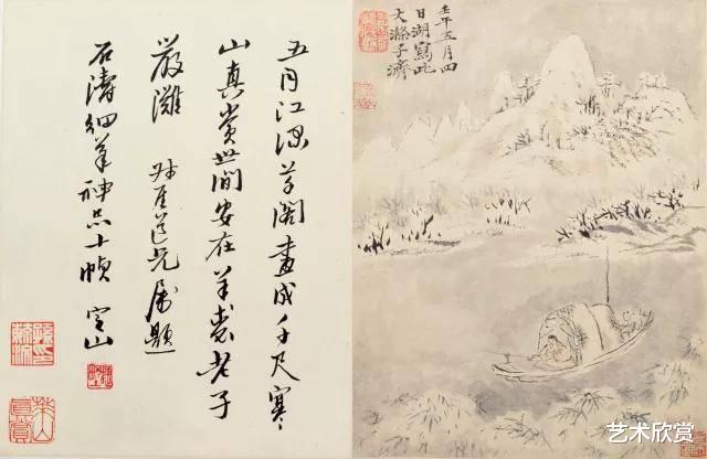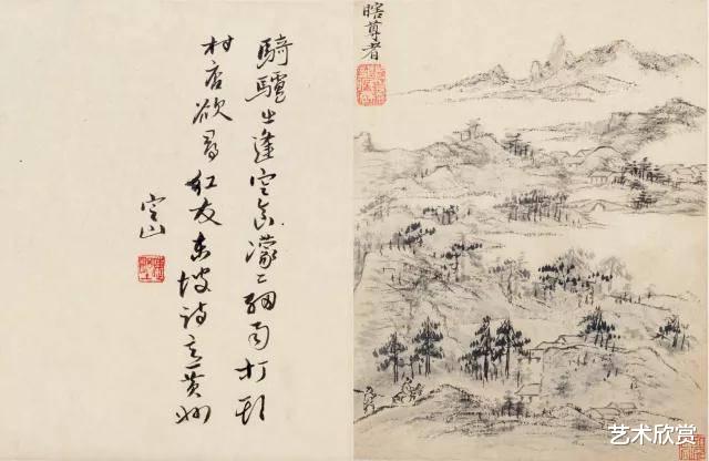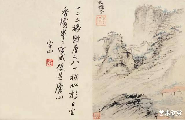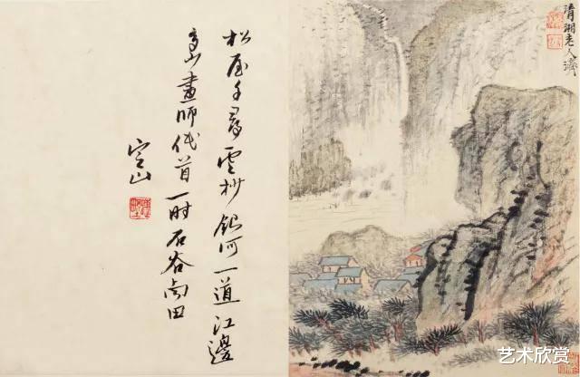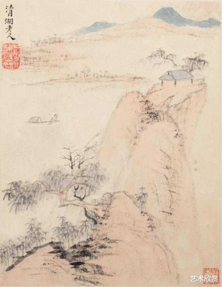 石涛的《细笔山水册》是其晚年艺术集大成之作,尤以“渴笔技法”为核心特征。他以干渴的笔触勾勒山石轮廓,墨色枯润相间,如《秋涧暮霭》一开中,焦墨皴擦的山体与淡墨晕染的云雾形成强烈对比,既显山石的苍劲,又赋予画面湿润的呼吸感。