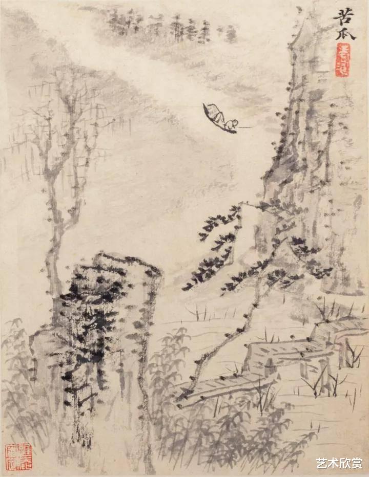这种技法源自对自然的深刻观察,石涛曾言“笔墨当随时代”,他将枯笔的飞白与湿墨的渗透结合,使画面既有金石般的质感,又不失水墨的灵动。