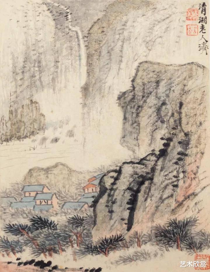 册页中《陡壁泉瀑》一开更见其墨法精妙:瀑布以留白技法呈现,两侧山石以浓墨挤压,水流似从虚空倾泻而下,虚实相生的处理让尺幅小景迸发出磅礴气势。这种“枯而腴,淡而厚”的笔墨语言,既是技法革新,更是石涛晚年超脱心境的写照。