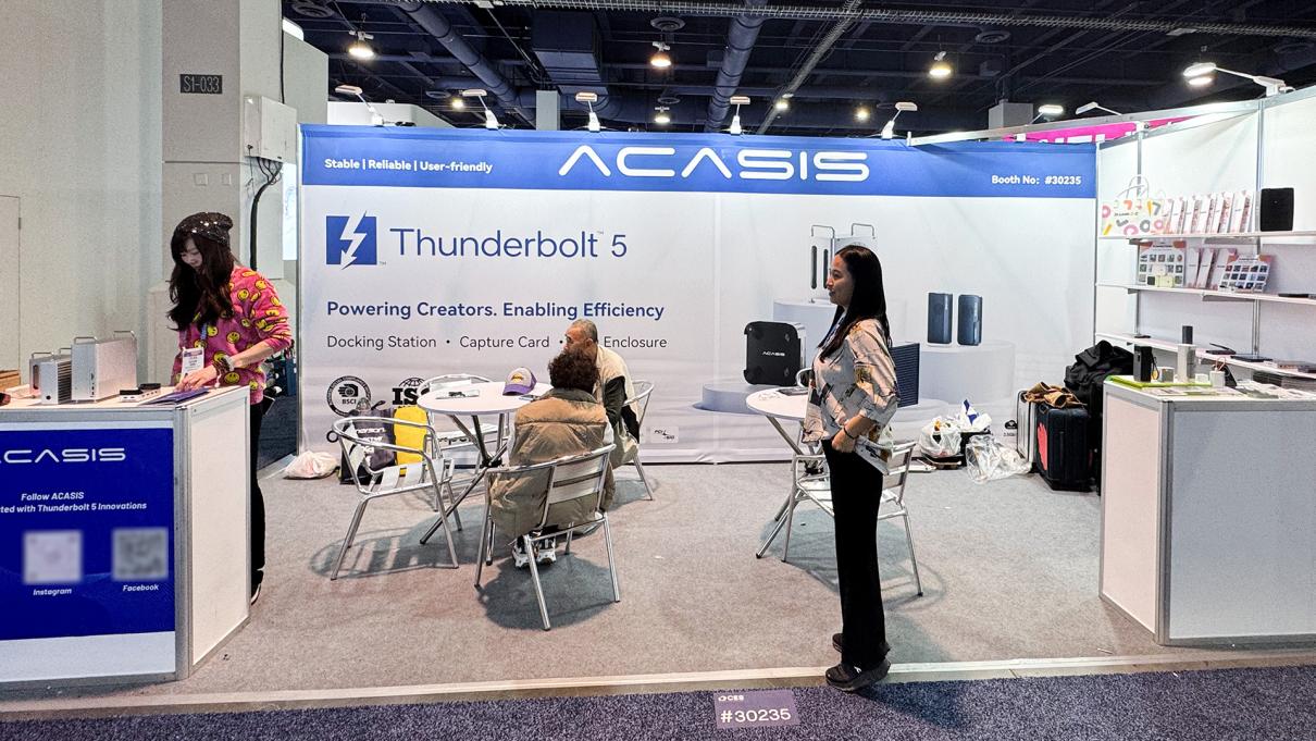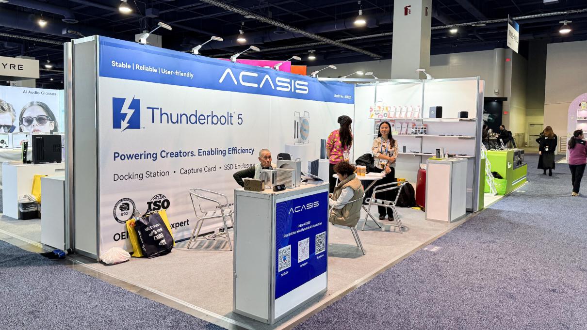 在今日召开的全球消费电子展 CES 上,阿卡西斯可以说是火力全开,重点围绕“Thunderbolt 5 高速生态”搞了波大的!不仅全球首发了一台 4 盘位的 Thunderbolt 5 外置存储系统,还同步推出了 Thunderbolt 5 Air 旗舰扩展坞,以及专门为 Mac mini 用户设计的解决方案等等好几款新品。他们的展位(#30235)前围观的人一直没断过,专业创作者、渠道伙伴、技术爱好者们都在那排队体验,亲自感受阿卡西斯是怎么重新定义“高速数据生态”的。