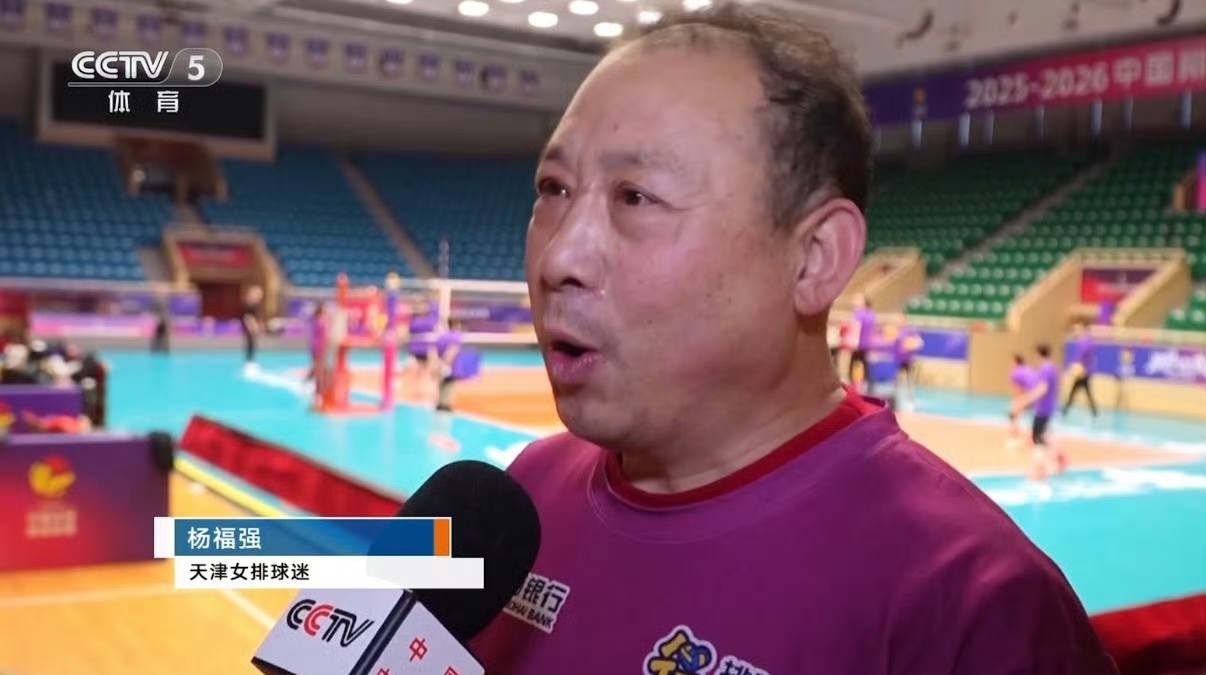 天津被称为排球之城,这座城市对于排球的热爱是有目共睹的,尤其是天津女排,她们带给天津这座城市的荣誉是非常多的,而近些年随着引进外援,天津男排也在成长,这才符合我们对排球之城的预期。天津的球迷非常的热情,即便是在客场比赛,我们依然可以看到身穿紫色战袍的球迷为球队加油,这也是让人非常感动的。或许是被这种热情所感动,在今年1月14日的时候,CCTV5以《天津排球 人民的排球》对天津排球进行了报道,其中还采访了一个球迷。