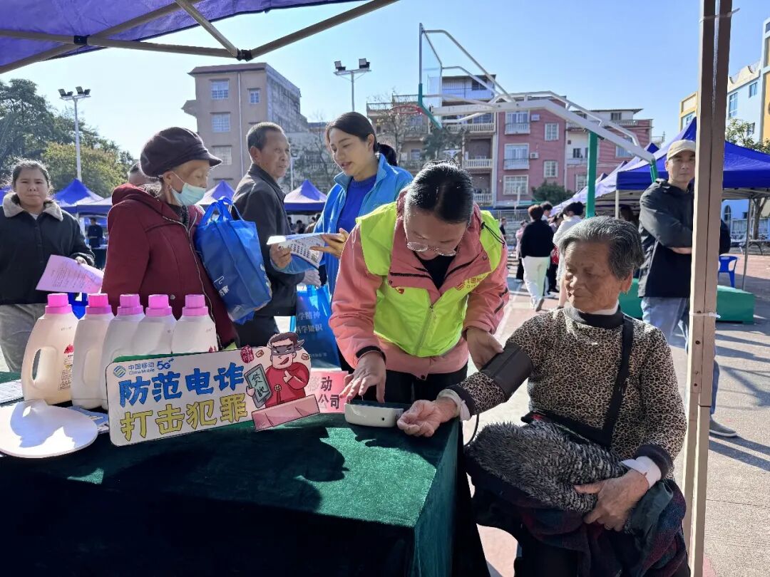 中国移动广西东兴分公司则把反诈搬到“三下乡”惠民演出现场。志愿者身们一边帮边民测血压,一边用方言揭秘“跨境高薪”骗局:“天上不会掉馅饼,境外打工要小心!”测完血压学反诈,这服务很实在。