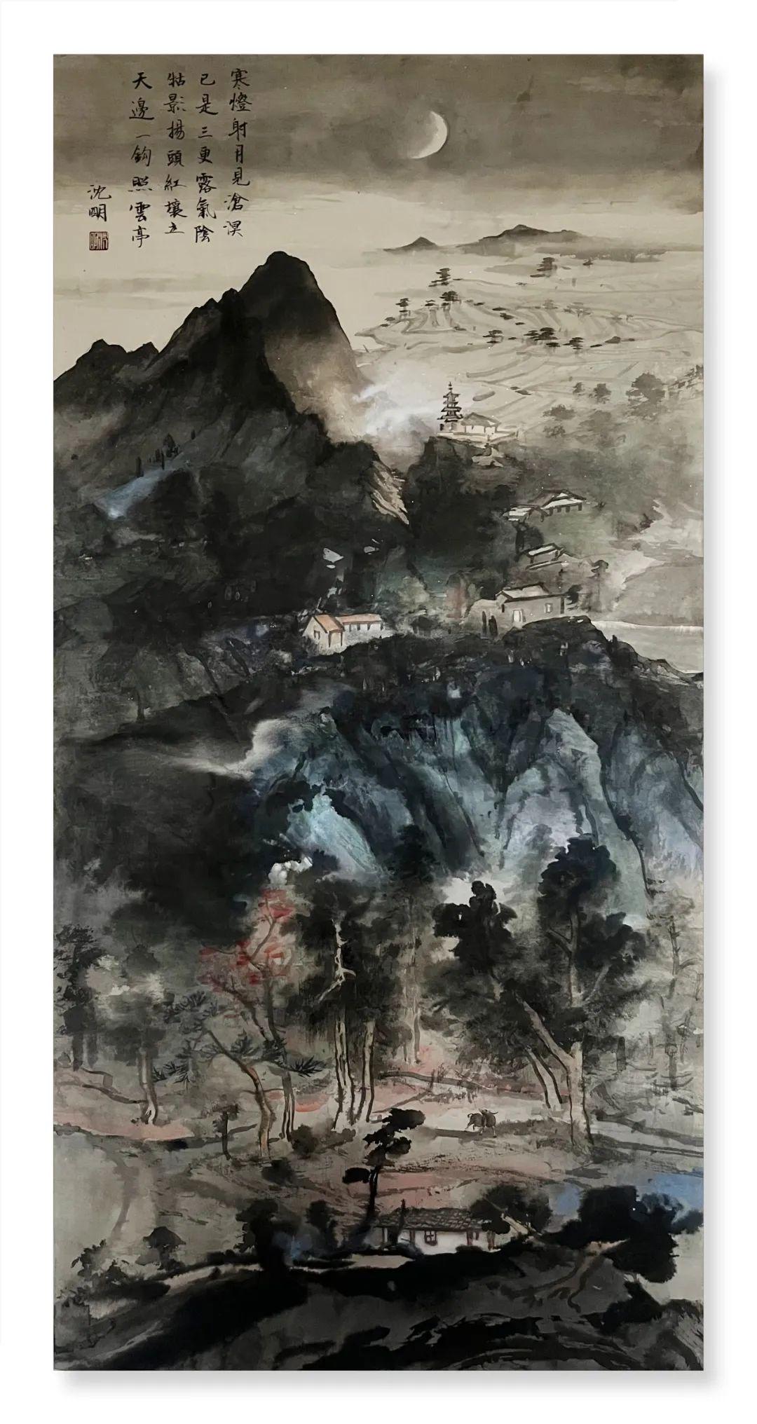 沈明,职业画家,早年字“云亭”,自号“云亭禅主”。1967生于云南昆明,16岁开始习画,1996年毕业于中央美术学院中国画系研修班。致力于两宋绘画的探索,取其精髓,同时深納元、明“四家”,和清“四僧”、“四王”之技法,博收黄宾虹、张大千、傅抱石、李可染之精妙,融合西方十九世纪“表现主义”绘画的强烈色彩和现代绘画的视觉冲击,从而成就自己的独特风格。作品构图严谨,工写到位,于大气中见磅礴,在空灵里传神韵,笔劲墨润,浑厚华滋,尺幅之间尽显古朴风韵和民族风情,给人以快慰、深邃,入胜之悦,可谓立意高远。