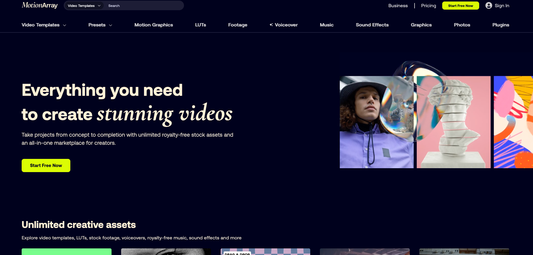 Motion Array在提供海量素材库的同时,更深度集成了创作工具与智能服务,宛如一个为视频创作者打造的“操作系统”。