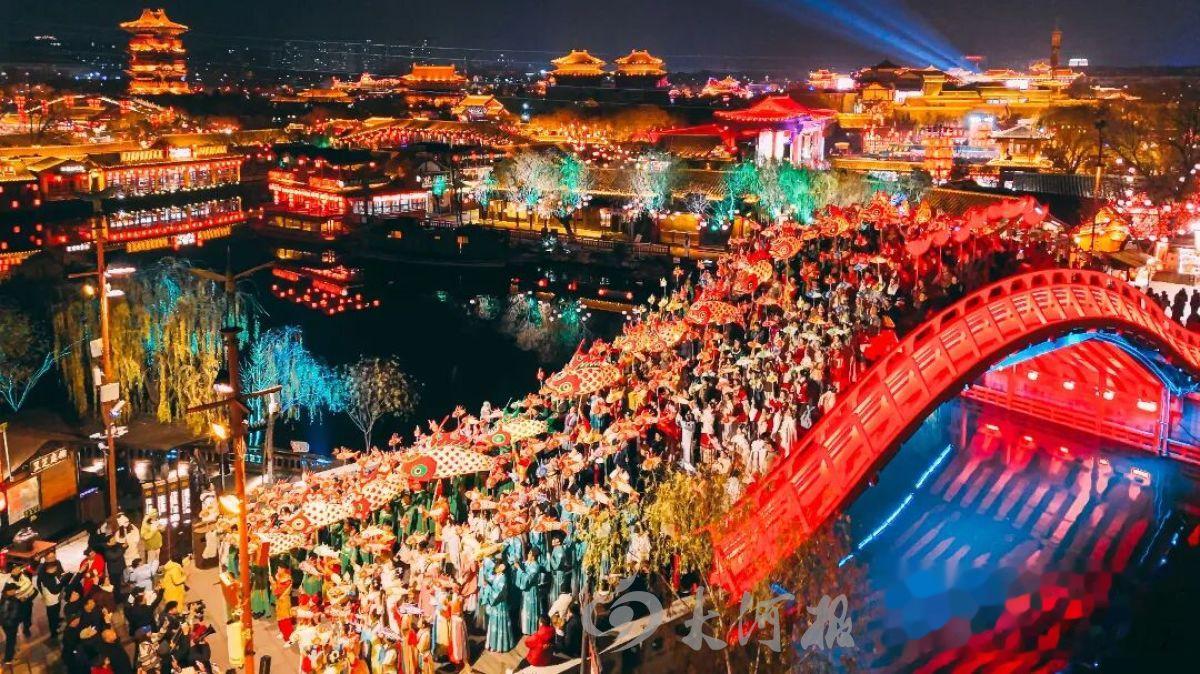 同程旅行数据显示,今年春节假期,开封成功入选全国“年味儿游”前十大热门目的地。围绕“大宋中国年·马上开封见”主题,开封推出了七大类60余项文旅活动。清明上河园百万盏花灯点亮“大宋不夜城”,万岁山武侠城每日超4000场实景演出更是吸引海量游客,火爆到不得不发布限流公告,引导游客错峰出行 。