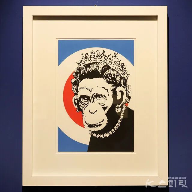 班克斯曾为英国女王伊丽莎白二世画像,此次也展出。