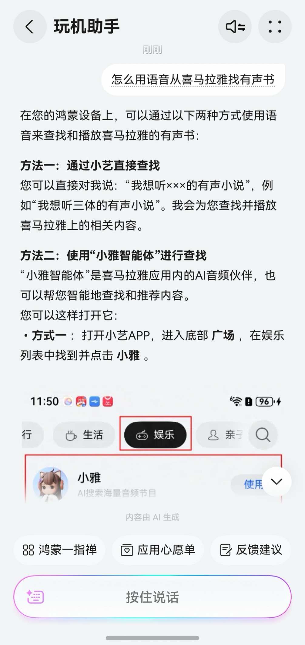 为了听书更方便,还可以问“怎么用语音找喜马拉雅上的有声书?”