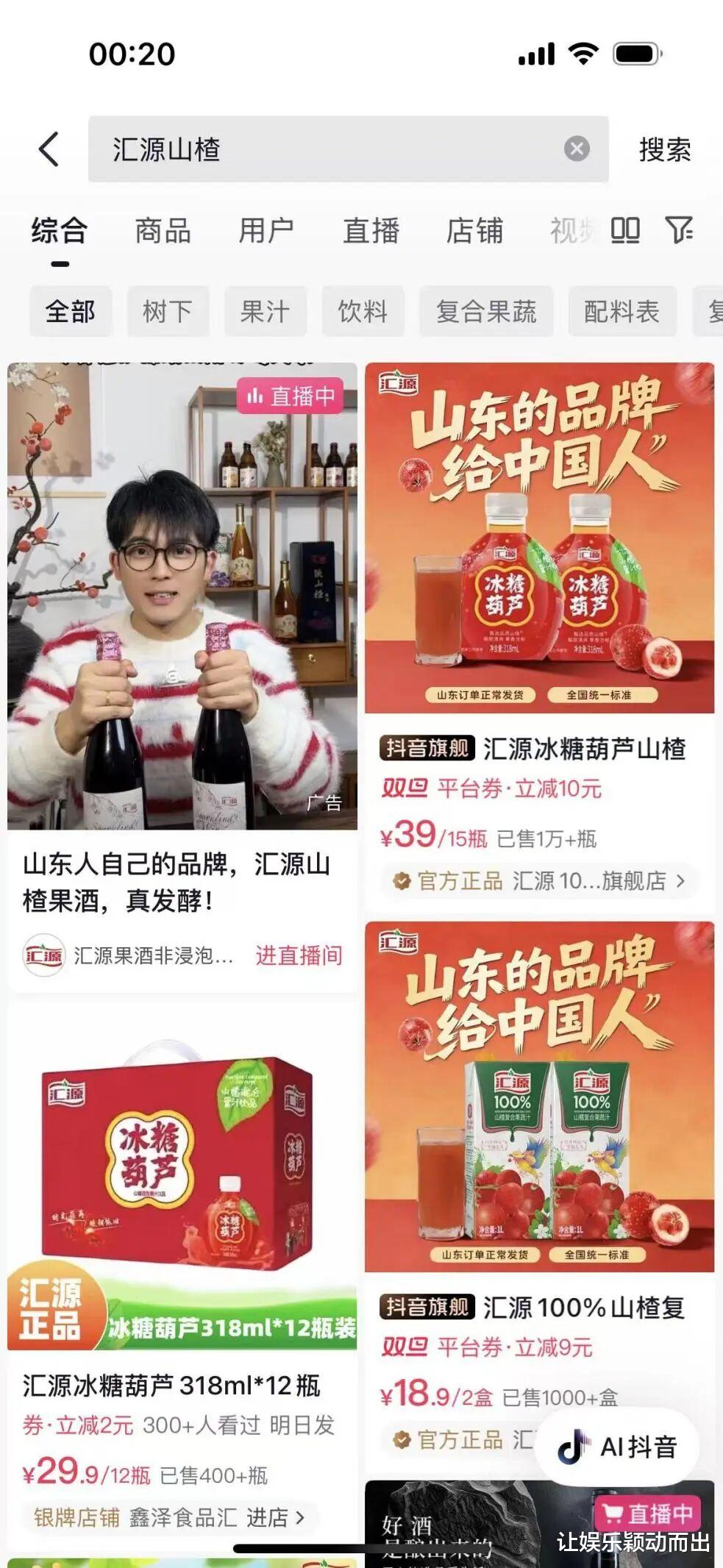 汇源果汁在抖音、拼多多等电商平台的宣传页上直接用大字标出“山东的品牌给山东人”,直播标题里也强调了“山东人自己的品牌”。