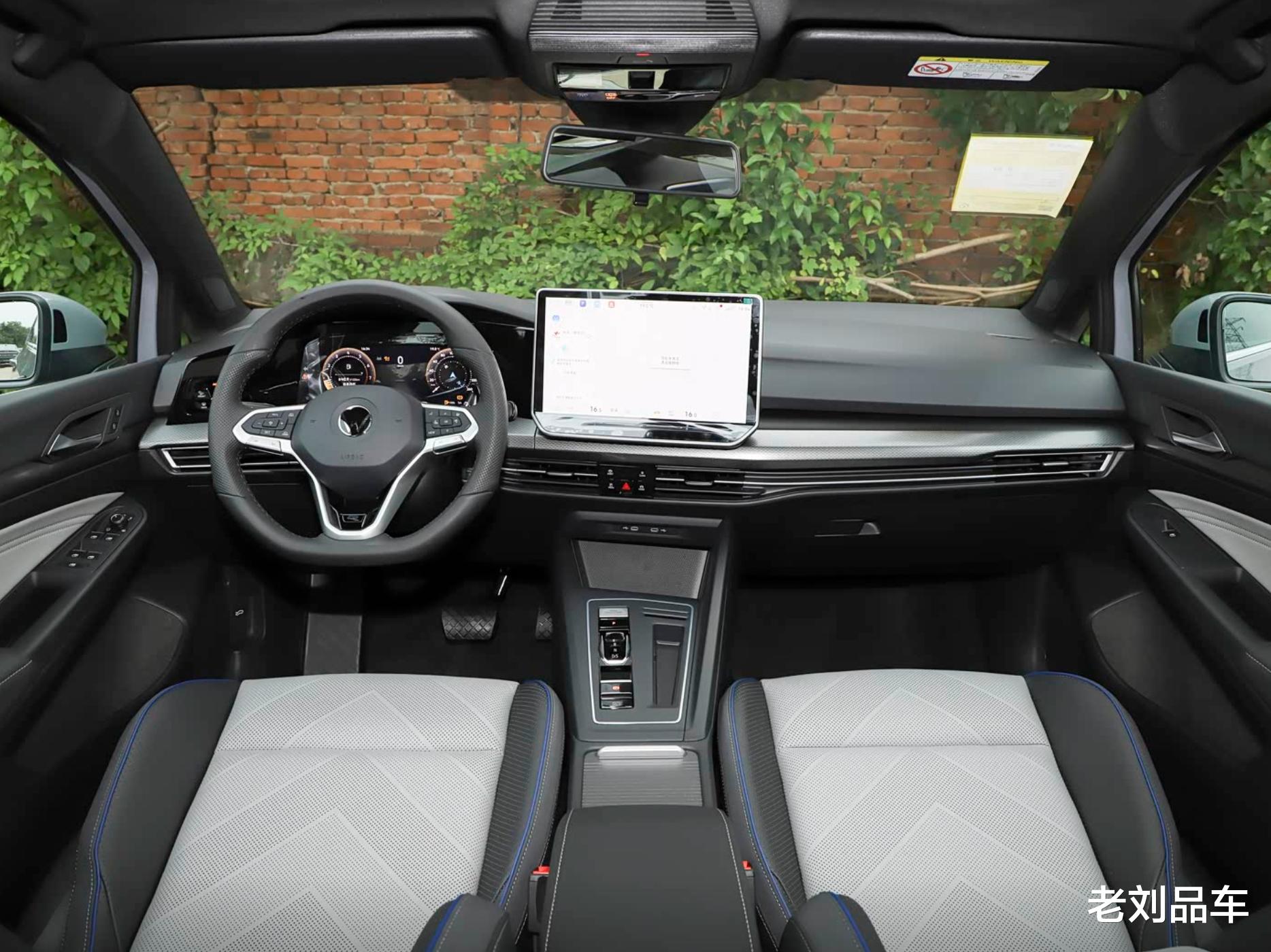 坐进车内,前排内饰依然延续了大众一贯简约、不花哨的设计风格。10.25英寸全液晶仪表盘搭配12.9英寸的中控触摸屏,整个中控台以搪塑材料和金属饰条为主。门板内侧也只有门把手附近是软包覆盖,尽管这些地方用料比较省成本,但方向盘还是给到了皮质包裹。如果大家想要换挡拨片,那么可以到4S店问问有没有2025款的中配和高配,2026款中这些配置被优化精简了,并且没法选装。说到选装,大众高尔夫的座椅,中配和高配想要加热和通风,分别需要1000元到3000元不等。此外,在座椅材质上三个版本也各有不同,入门版是织物材质,中配车型是织物/皮质混搭,高配仿皮包覆,舒适度中等。