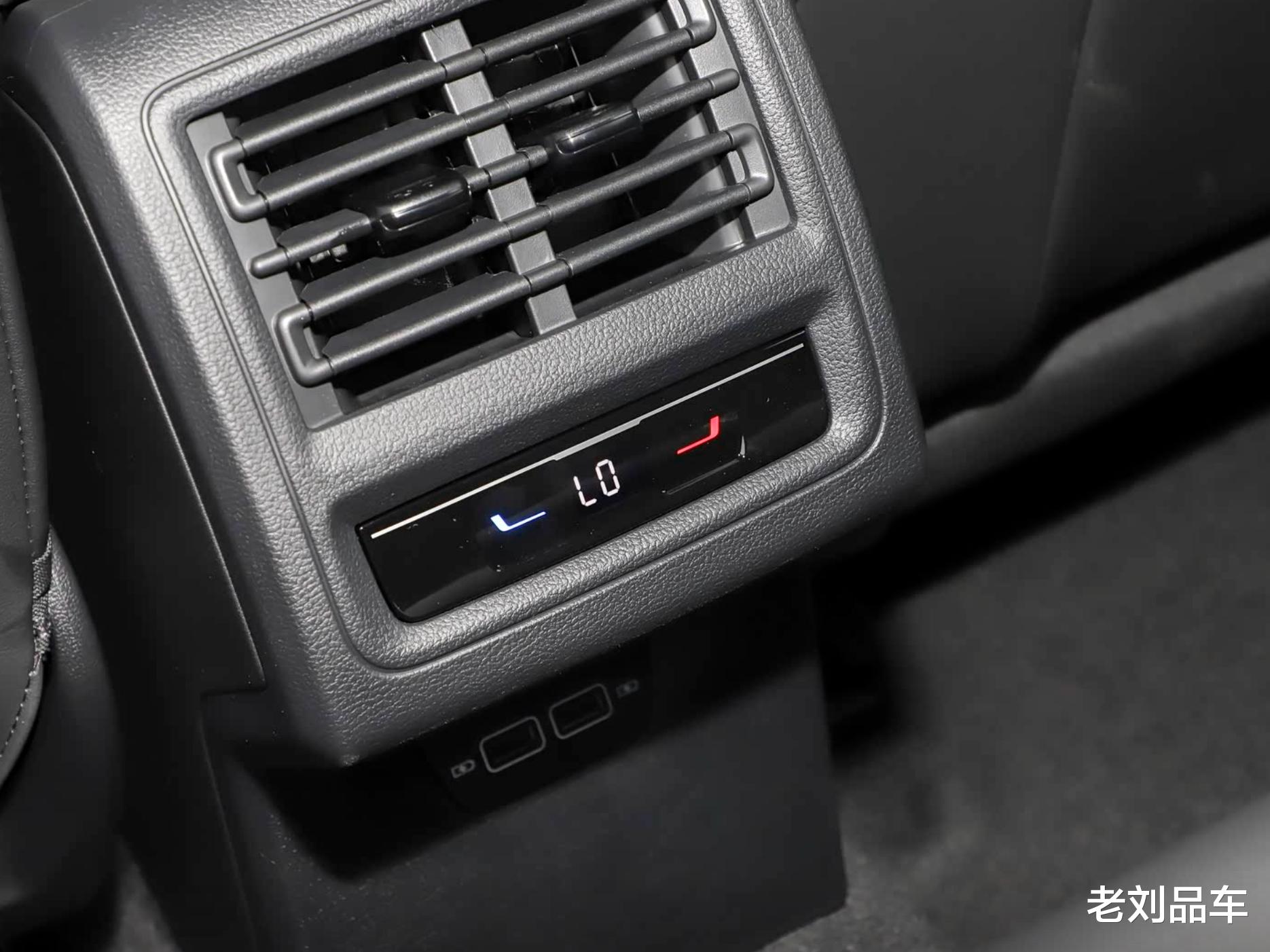 后排空间表现中规中矩,把前排座椅调到合适的驾驶坐姿,试驾者身高1.83米,腿部空间接近两拳,头顶富余一拳两指,非常宽敞。座椅舒适度和前排一致,坐垫稍短,功能性配置简单,有后排出风口和USB接口,整体看适合年轻家庭,但长途可能不够舒适。