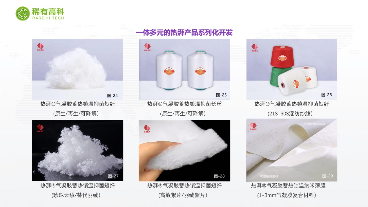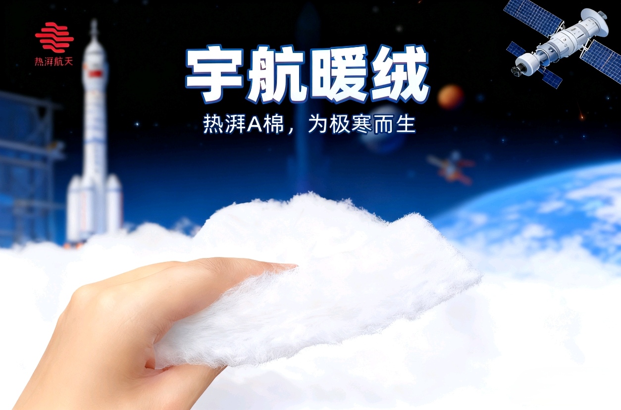 作为目前已知导热系数最低的固体材料,传统气凝胶存在脆性大、不耐弯折的问题,很难直接用于纺织。而热湃气凝胶抗寒纤维通过技术改良解决了这个痛点。徐磊展示的材料结构图显示,其采用“气凝胶微颗粒与柔性纤维共混”工艺,把纳米级的气凝胶颗粒均匀嵌入聚酯纤维等载体中,既完整保留了0.019W/(m·K)的超低导热优势,又让材料变得柔韧耐造,能揉搓、可水洗——这正是它能从航天实验室“走进”百姓衣橱的关键突破。