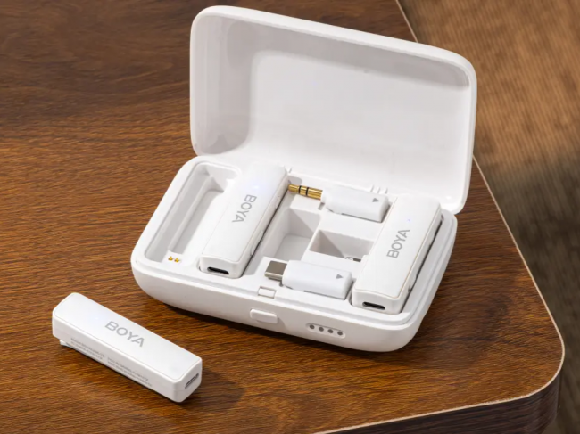 续航能力贴合日常创作需求,单次续航5小时,搭配充电盒总续航15小时,无需频繁充电。它采用2.4GHz无线传输技术,信号比较稳定,开机可自动配对,操作难度低,新手能快速上手。设备支持Type-C接口,兼容手机、相机、电脑,使用场景广泛,适合短视频创作和外出采访。