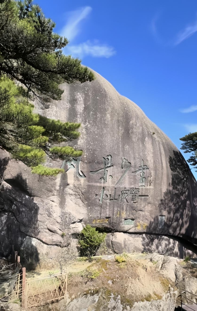 人山人海的游客特别多,各自拿着手机都在拍照取景,当然,小编也是在人群中游荡,周围的大大小小石壁上还有不少的字迹,这些字迹都是文人墨客留下的,小编沿着蜿蜒曲折的小路走去,迎客松脚下的石板路历经岁月的打磨,特别光滑比较平整,周围的景色令人沉醉。