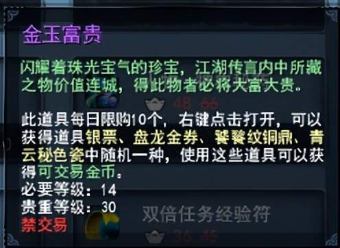 五行盘才是隐藏大佬!70声望+5金币换一个,每周30个上限,直接摆摊卖金或者升级挖宝——上周有人挖出青云秘色瓷,直接换了100金币。金玉富贵更刺激,300元宝开十个,运气好能爆100金的青云瓷,四个号一起开,稳赚不赔。