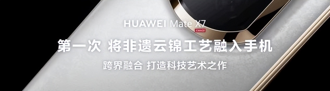 Mate X7在设计上实现了东方美学与前沿科技的深度融合,堪称折叠屏设计的新典范。机身背板创新性引入拥有1600年历史的非遗云锦工艺,通过纳米纤维经纬交织技术还原云锦细腻肌理,推出云锦白、云锦蓝两款文化限定色,搭配寰宇红、幻影紫、曜石黑三款素皮版本,触感温润且抗指纹性能出色。后置摄像头模组采用全新“星钻几何”设计语言,昆仑玻璃经精密切割后嵌入机身,光线照射下呈现类钻石棱面光泽,彻底告别传统折叠屏模组突兀的痛点。