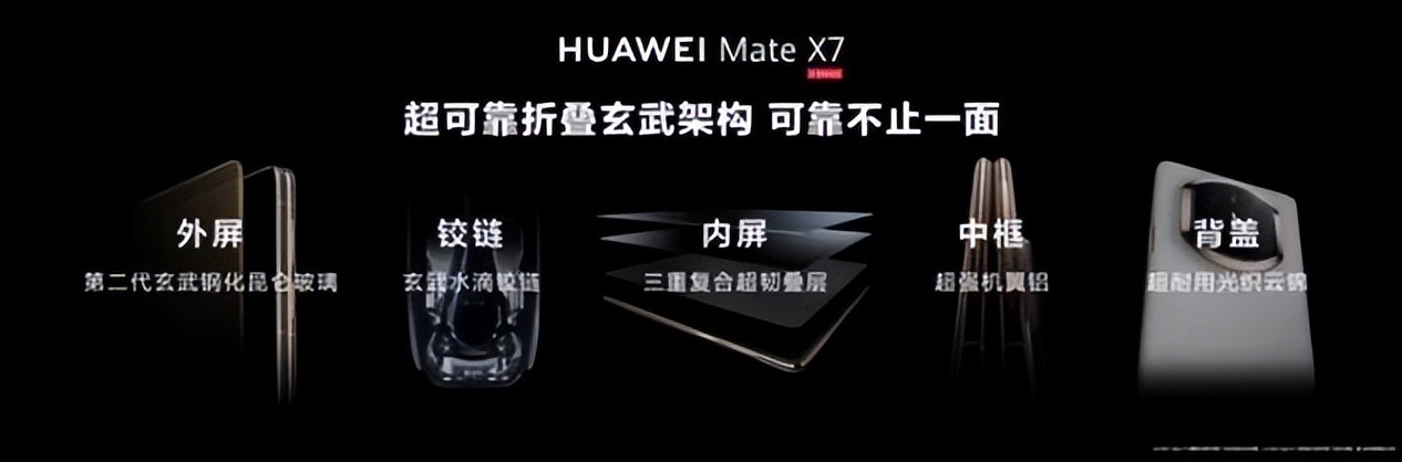 依托第四代玄武水滴铰链技术与航空级钛合金中框的创新应用,Mate X7将整机重量控制在221g起,折叠态厚度仅8.2mm,展开态薄至4.5mm,手感无限接近直板旗舰。内屏搭载全球首发COE无偏光片技术,光线利用率提升50%,峰值亮度突破3500尼特,配合1-120Hz LTPO自适应刷新率,兼顾视觉体验与功耗控制;外屏覆盖第三代玄武钢化昆仑玻璃,抗摔性提升3倍,日常使用无需贴膜即可安心。