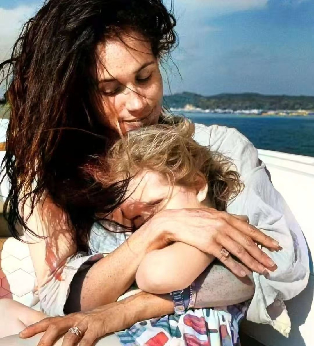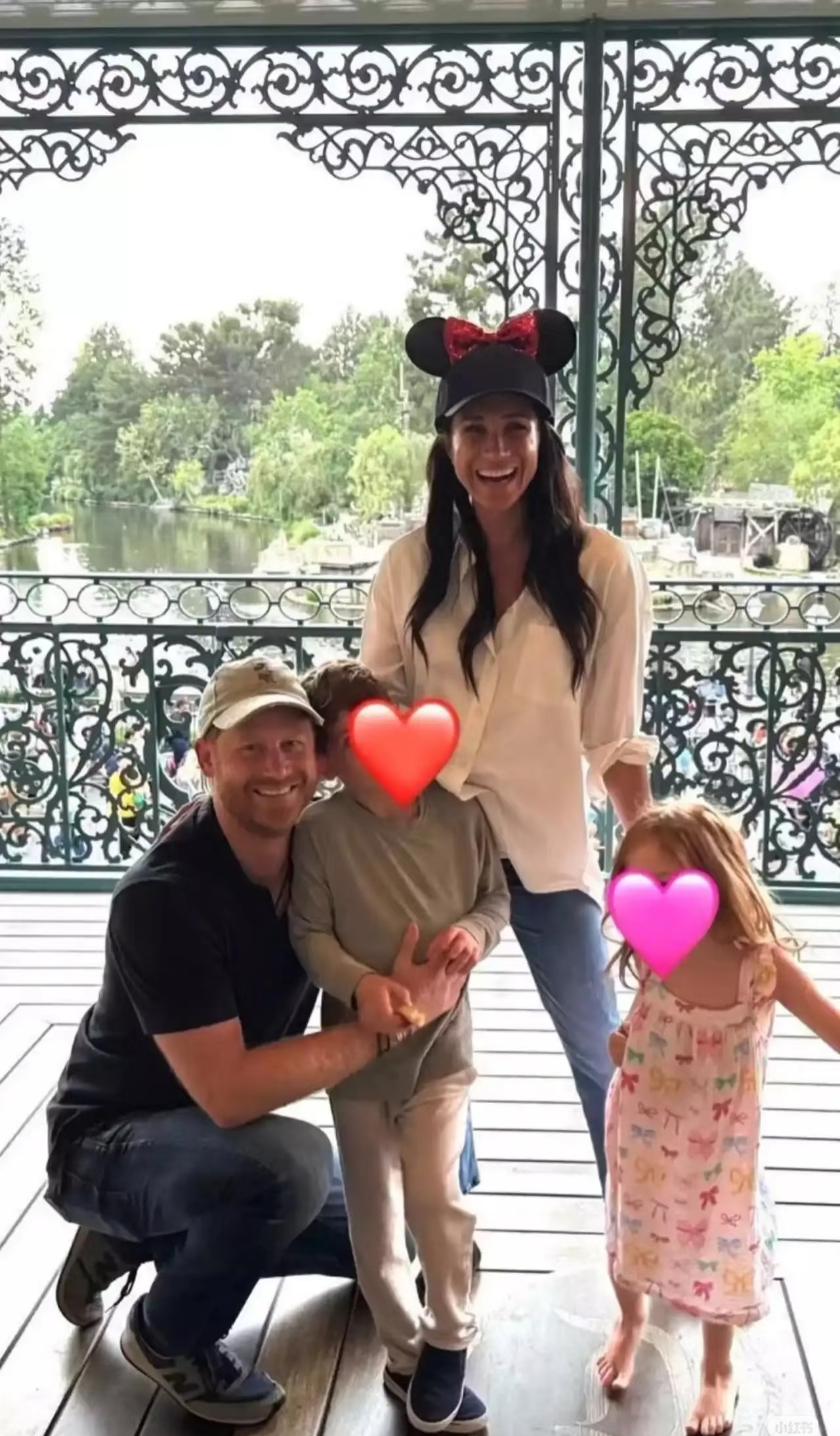 合照中,梅根俯身拉着女儿的双手甜蜜对望,阿奇则抱着哈里的腰笑得一脸灿烂,整个画面温馨又和谐。