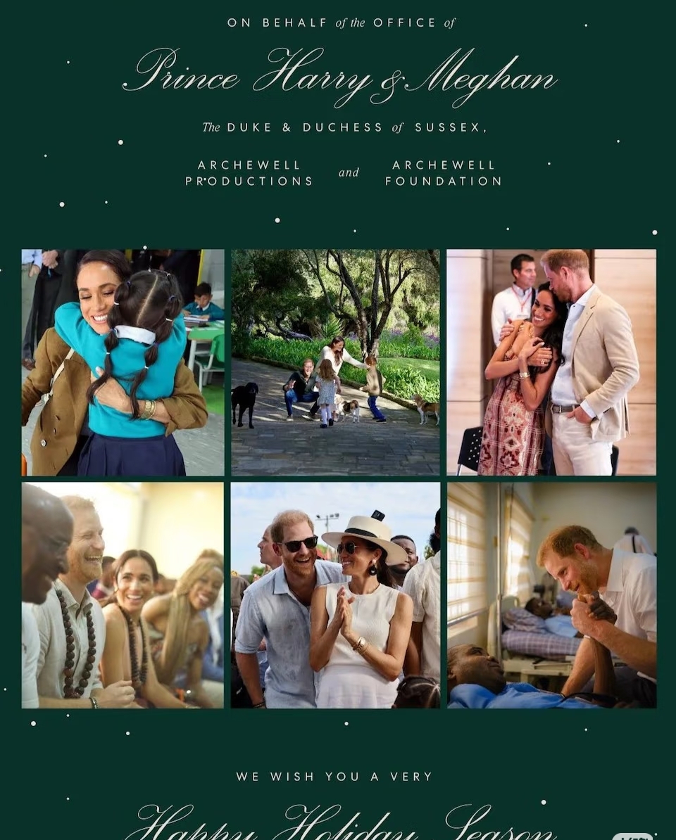 而英国王室的苏塞克斯公爵夫妇哈里王子和梅根,虽然出走王室五年了,不过两人依旧保持了发圣诞全家福的习惯。