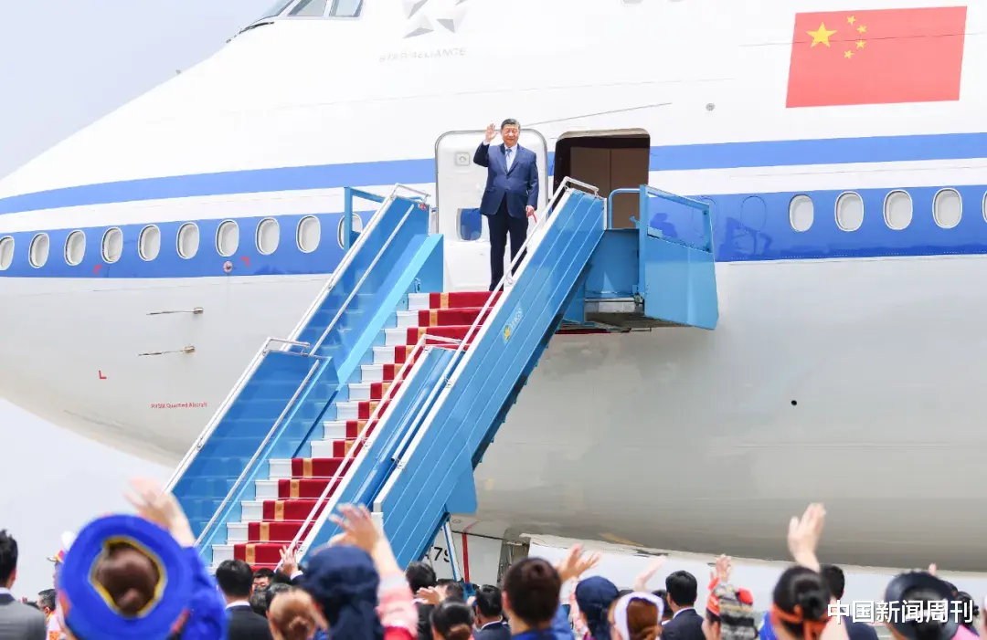4月14日中午,中共中央总书记、国家主席习近平乘专机抵达河内,应越南共产党中央委员会总书记苏林、越南社会主义共和国主席梁强邀请,对越南进行国事访问。图/新华