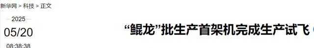 “鲲龙”批生产首架机完成生产试飞 2025 05/20 08:38:38 来源:科技日报