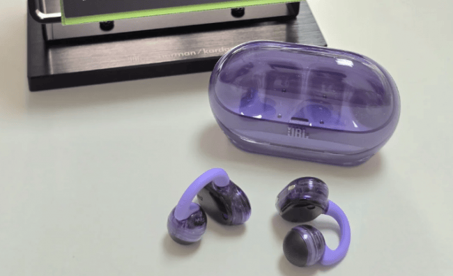 JBL琉璃扣采用半透明充电盒设计,内部结构一览无余,整体科技感与时尚感兼具,外观辨识度非常高。耳机本体使用C形弹性桥结构,外层包裹柔性TPU材质,佩戴稳定性表现尚可。不过由于单耳重量相对偏大,长时间佩戴时会逐渐产生夹耳感,更适合短时间或间歇性使用。