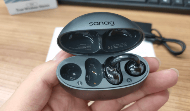 塞那S6S Ultra外观走时尚路线,磨砂机身手感细腻。单耳重量仅约3.5g,佩戴时几乎感觉不到负担,长时间使用非常轻松。不过稳定性相对一般,并不太适合运动场景。