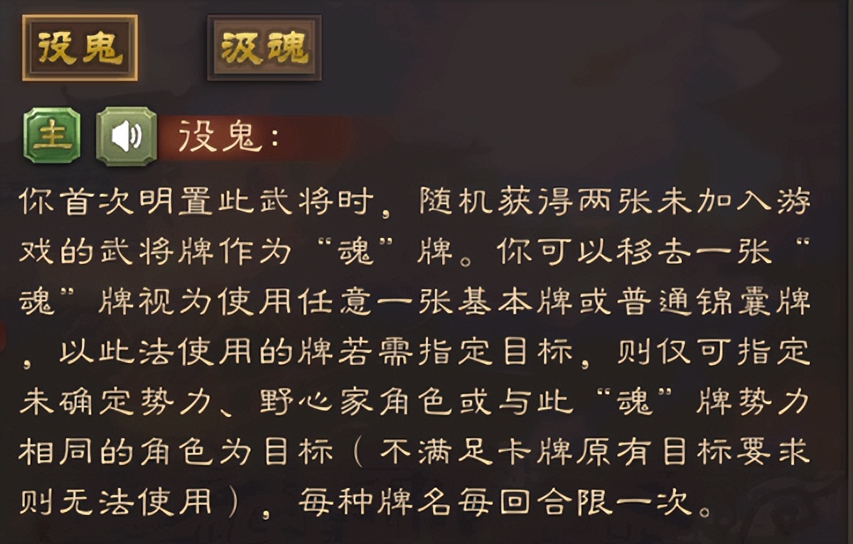 技能有点难懂,其实理解起来可以类比张让公公,毕竟是一种类型的设计。看1技能就是对特定势力的武将使用特定势力的标记,然后以张让公公的方式进行喊牌。简要介绍一下,这个喊牌方式是每回合每种牌限一次,比如左慈的进攻轮次喊不出两张顺。左慈的回合外喊不出两口酒等等。但是只要每回合结束就会刷新。