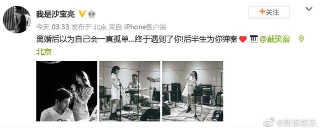 图片配文更是撒狗粮,直接来段表白:“离婚后以为自己会一直孤单…终于遇到了你!后半生为你弹奏。”极具浪漫~