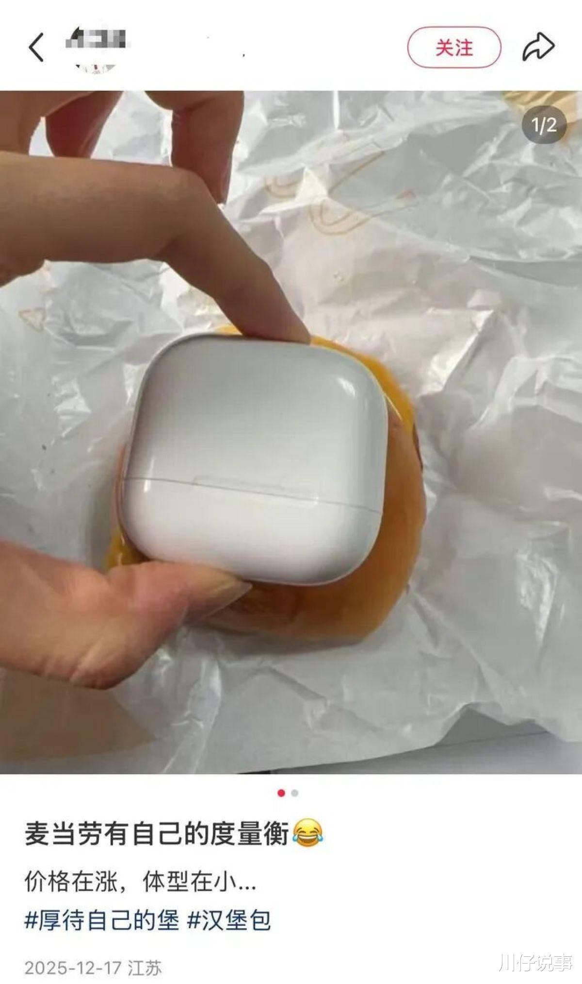 那天用耳机盒一对比,汉堡比耳机盒大不了多少——我花25块买的不是汉堡,是‘耳机盒大小的寂寞’。”