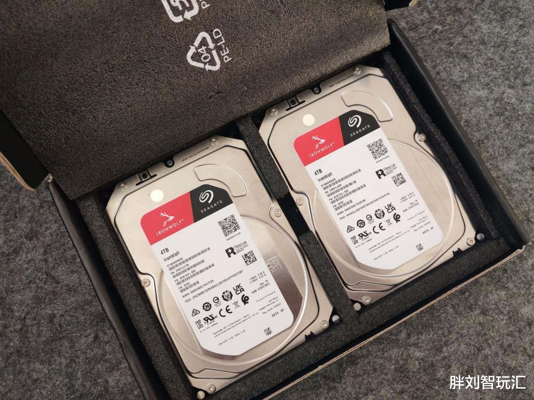 虽然硬盘托架不支持快拆设计,但对于家用场景而言,硬盘更换频率极低,这种设计完全不影响使用,反而能保证硬盘安装的稳固性。我本次搭配了两块4TB希捷酷狼,作为NAS专用硬盘,接下来让我们看一下绿联DH4300 Plus的硬件配置