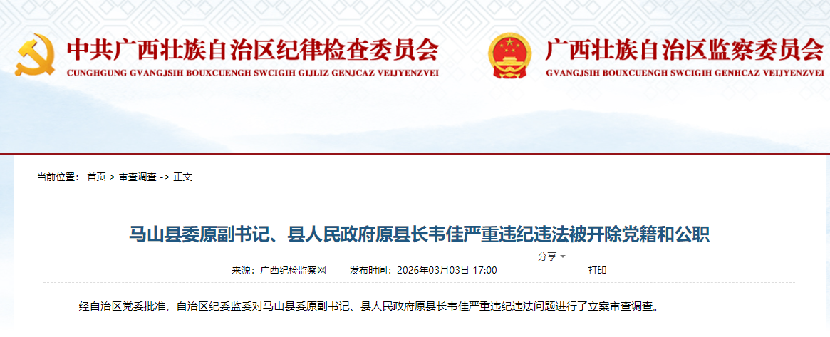 公元二〇二六年一月九日,事觉,涉嫌严重违纪违法,接受自治区纪委监委纪律审查和监察调查。同年三月三日,经自治区党委批准,被开除党籍、开除公职,终止两级党代会代表资格,违纪违法所得收缴,其涉嫌犯罪问题移送检察机关审查起诉。三十年仕途,一朝尽毁。