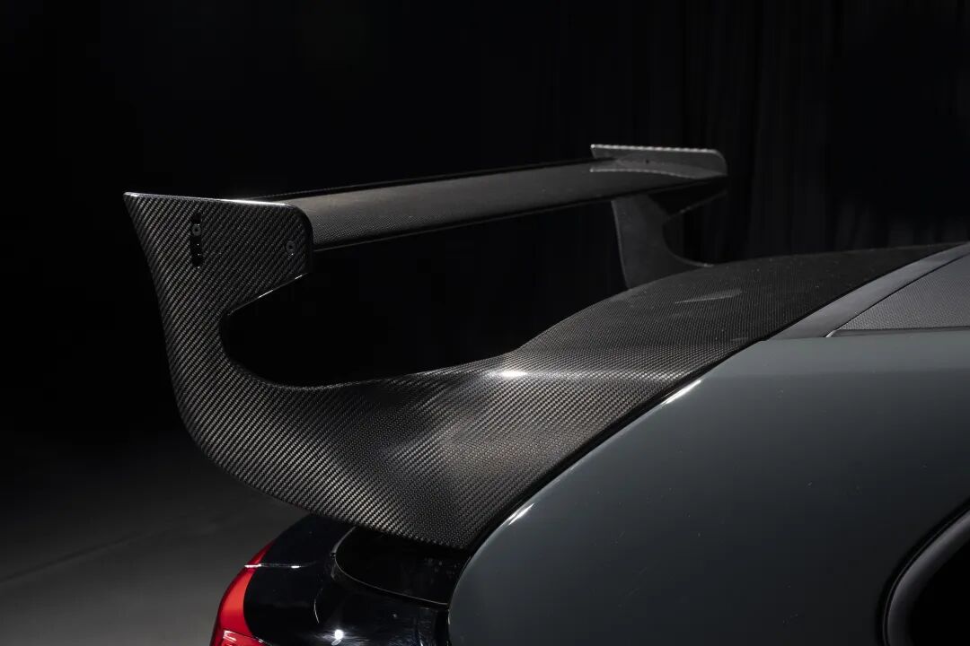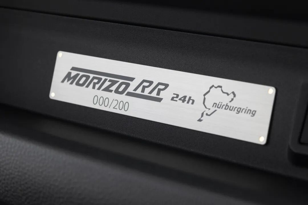 首先,它配备了大型碳纤维后扰流板、新设计的前分离器以及定制侧裙。同时还采用轻量化碳纤维发动机盖、独特的哑光古铜色轮毂和黄色制动卡钳。Morizo RR还拥有专属配色,名为“砾石卡其色”。