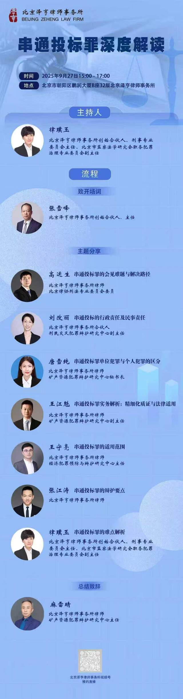 2025年9月27日,北京泽亨律师事务所举办“串通投标罪深度解读”专题研讨会,从会见难题、责任区分、法律适用、辩护要点等多维度,为法律从业者及相关企业带来一场专业且务实的法律实务解析盛宴。