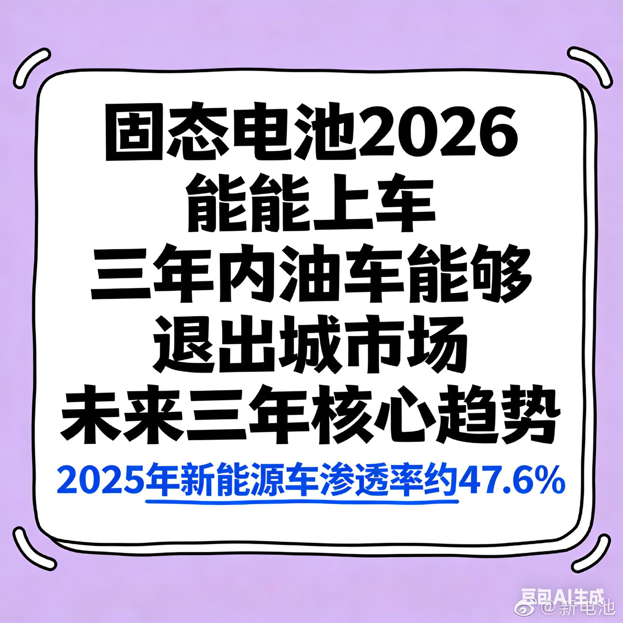 结论速览:2026年半固态电池可小批量上车,全固态仍处验证期;三年内油车不会退出国内市场,是油电共存的过渡期。