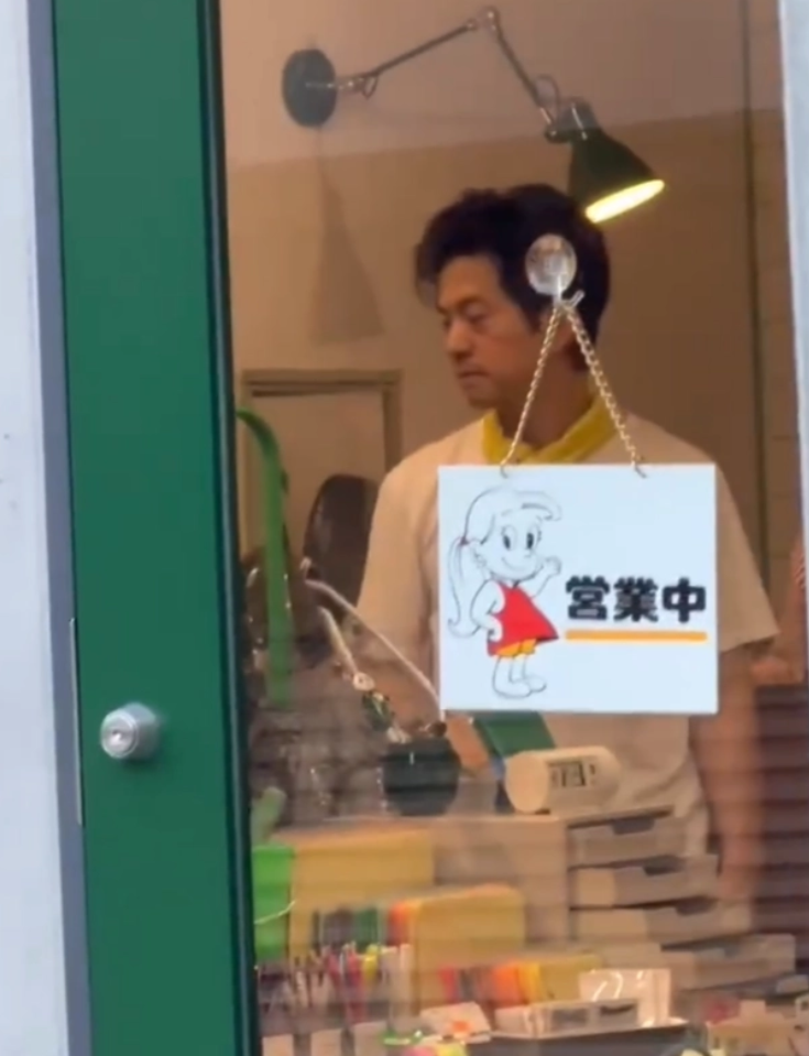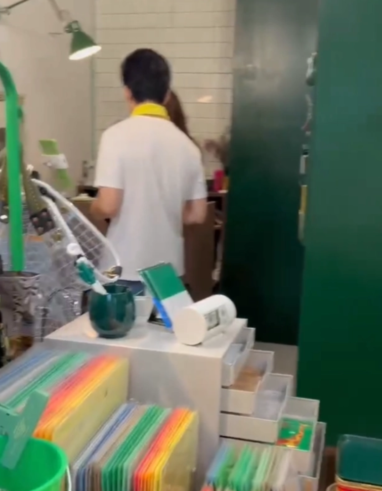 只见他时而在店里独自闲逛,时而又和店员热切地聊着天,心情看起来相当不错。
