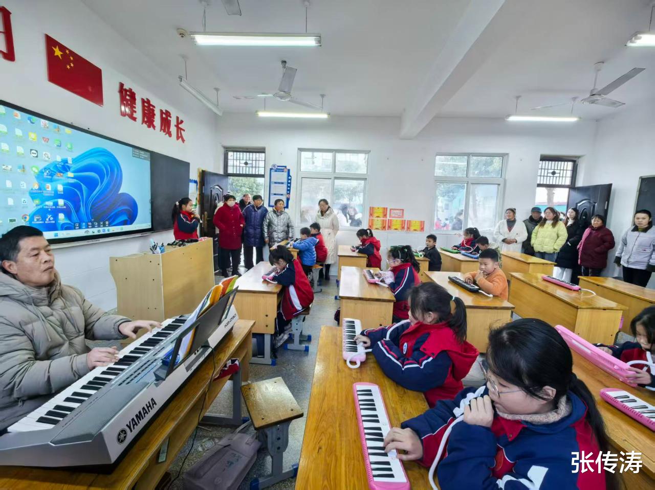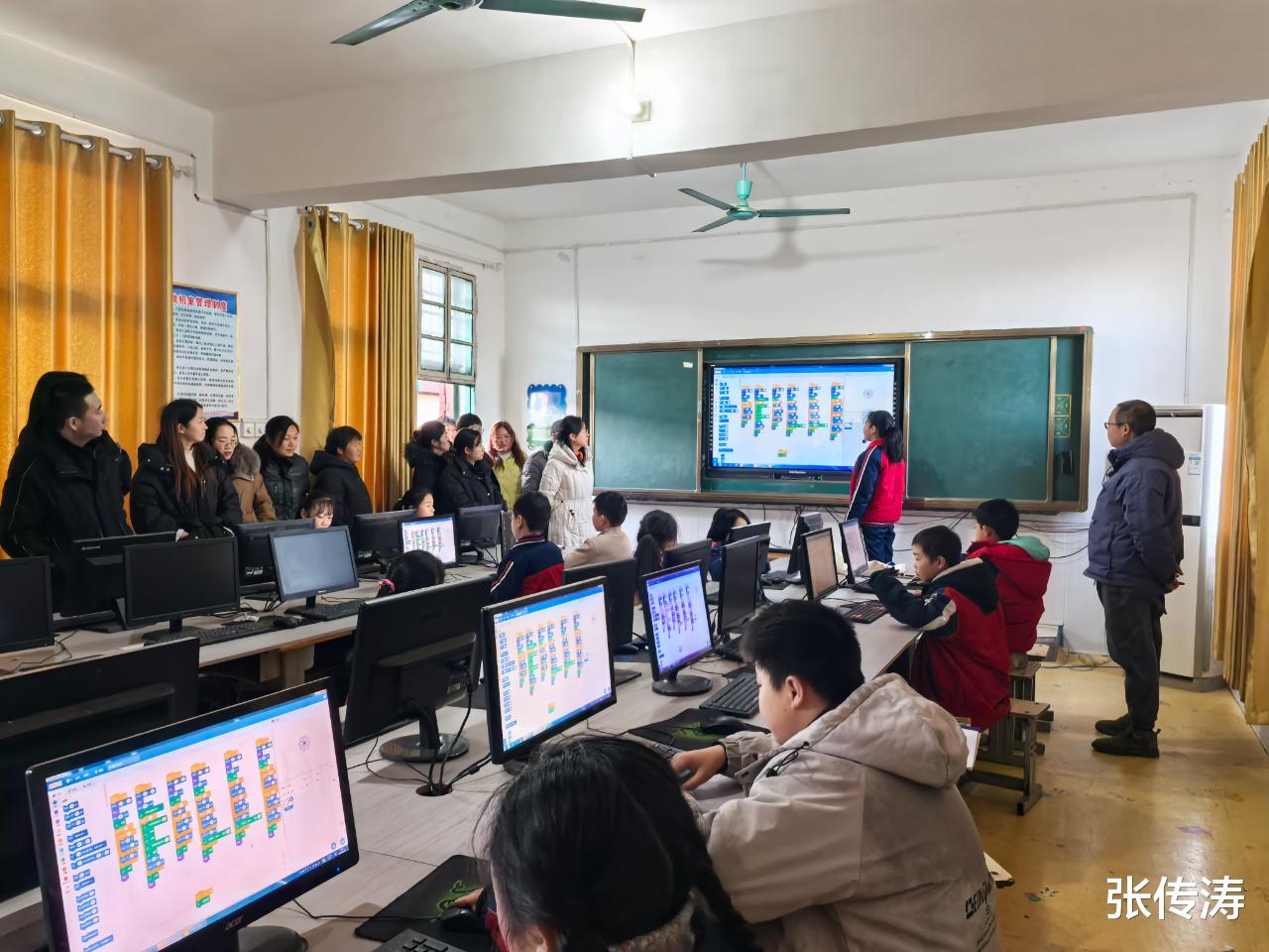 活动当天,家长们首先走进各社团教室,沉浸式观摩孩子们的社团学习日常。音乐教室内,孩子们手持口风琴,配合教师的雅马哈电子琴伴奏奏响悠扬旋律,专注的神情尽显对音乐的热爱;美术课堂上,“套色剪纸”社团的学生化身小小艺术家,用彩纸、剪刀创作充满童趣的民间艺术作品,家长们驻足围观,不时为孩子的巧思点赞;书法社团里,墨香氤氲,孩子们手握毛笔一笔一划描摹汉字,在横竖撇捺间感受中华传统文化的魅力;信息技术社团中,学生们紧盯电脑屏幕开展编程实践,在数字世界里探索创新乐趣。