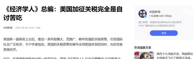 《经济学人》总编:美国加征关税完全是自讨苦吃——央视新闻2025-04-28