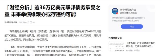 「财经分析」逾36万亿美元联邦债务承受之重 未来举债维艰亦或存违约可能——新华财经客户端2025-04-17