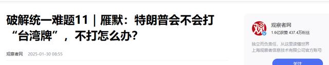 破解统一难题11|雁默:特朗普会不会打“台湾牌”,不打怎么办?——观察者网2025-01-30