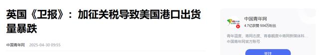 英国《卫报》:加征关税导致美国港口出货量暴跌——中国青年网2025-04-30
